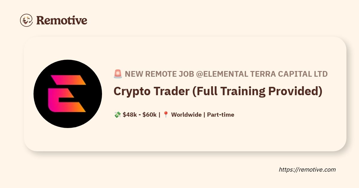 [ad_1] Crypto Trader (Full Training Provided) @Elemental Terra Capital Ltd 🙈 Does this job need an…