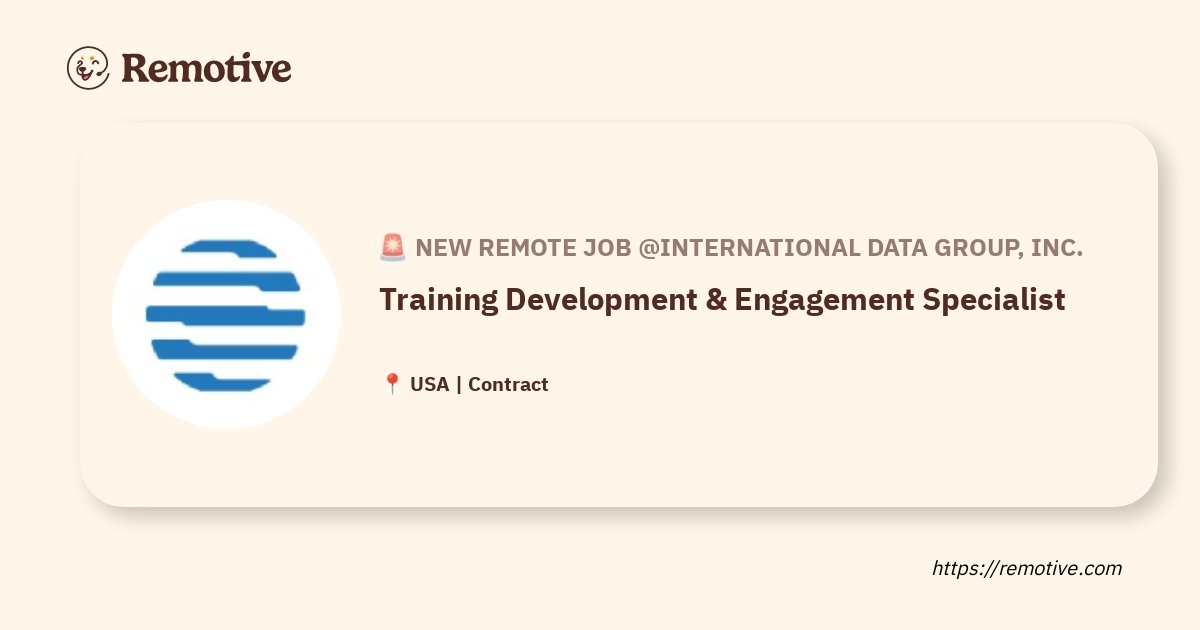 International Data Corporation (IDC) is seeking a dynamic and Training Development & Engagement Specialist (Contractor) to design, coordinate, and facilitate scalable business-specific training and development programs. This role is instrumental in building a repository of training content that promotes consistency, scalability, and standardization of delivery across IDC’s Research & Data organization.